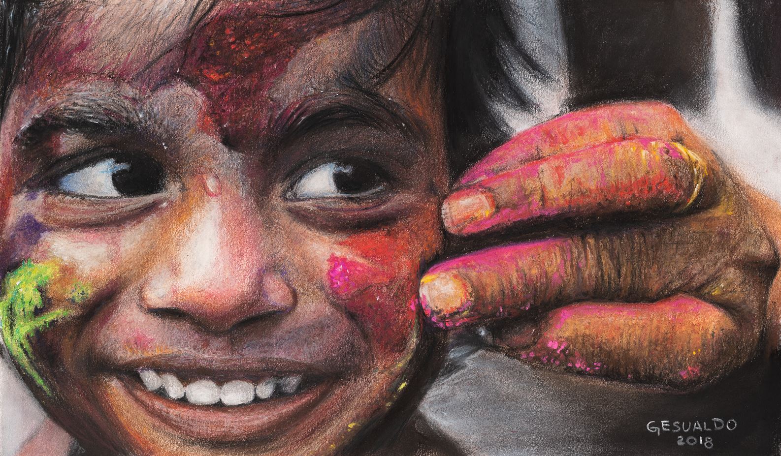 bajo un cielo celeste límpido, sobre un cielo verde fértil anhela un saludable futuro a todos los niños. N.C